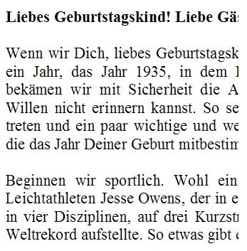 Geburtstagsrede für eine im Jahr 1935 geborene Freundin oder Verwandte